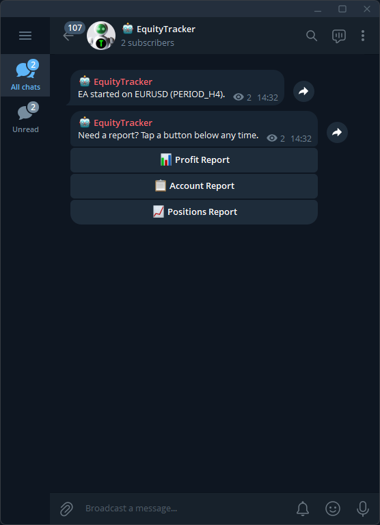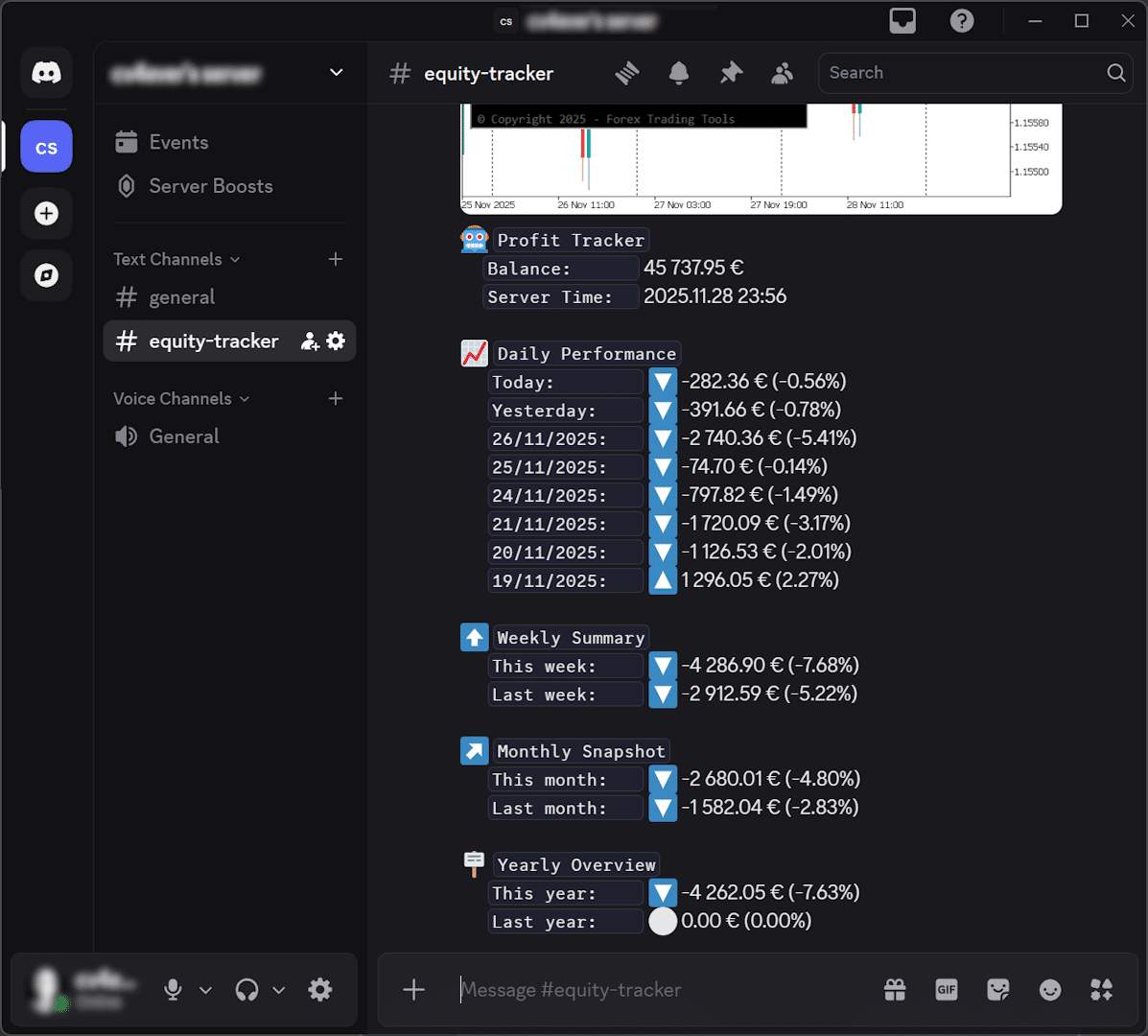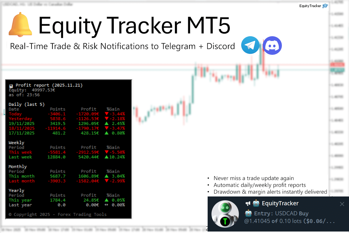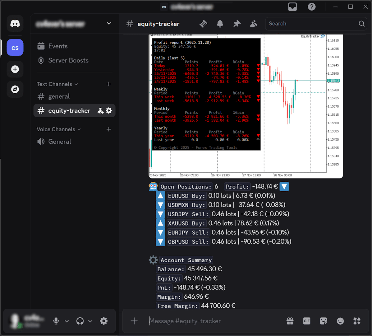 Connect Telegram or Discord, enable WebRequests and Equity Tracker MT5 will start sending alerts automatically.