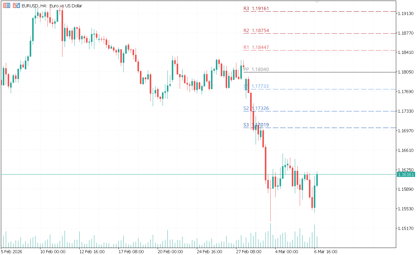 Free MT5 Pivot Points Indicator for MetaTrader 5. Draw Classic, Fibonacci, Camarilla, Woodie, and DeMark pivot levels with Daily, Weekly, and Monthly timeframe support.